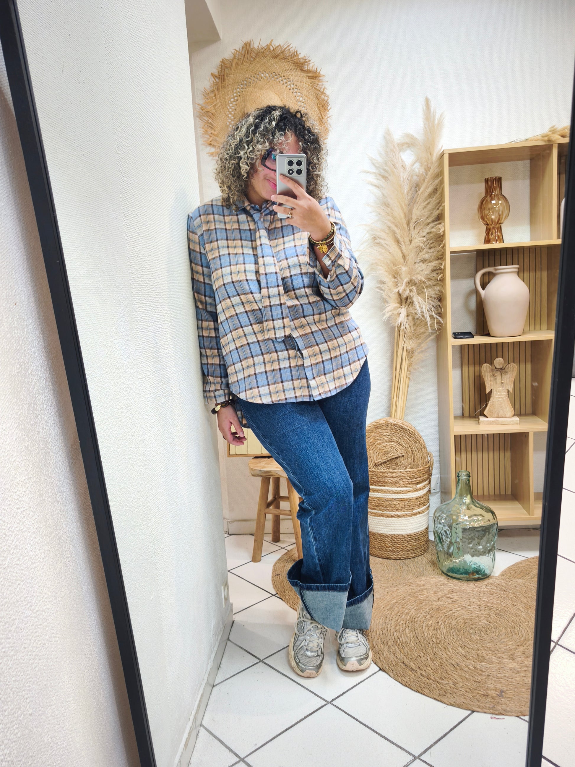 Chemise oversize à carreaux avec sa cravate. Très tendance, on adore !