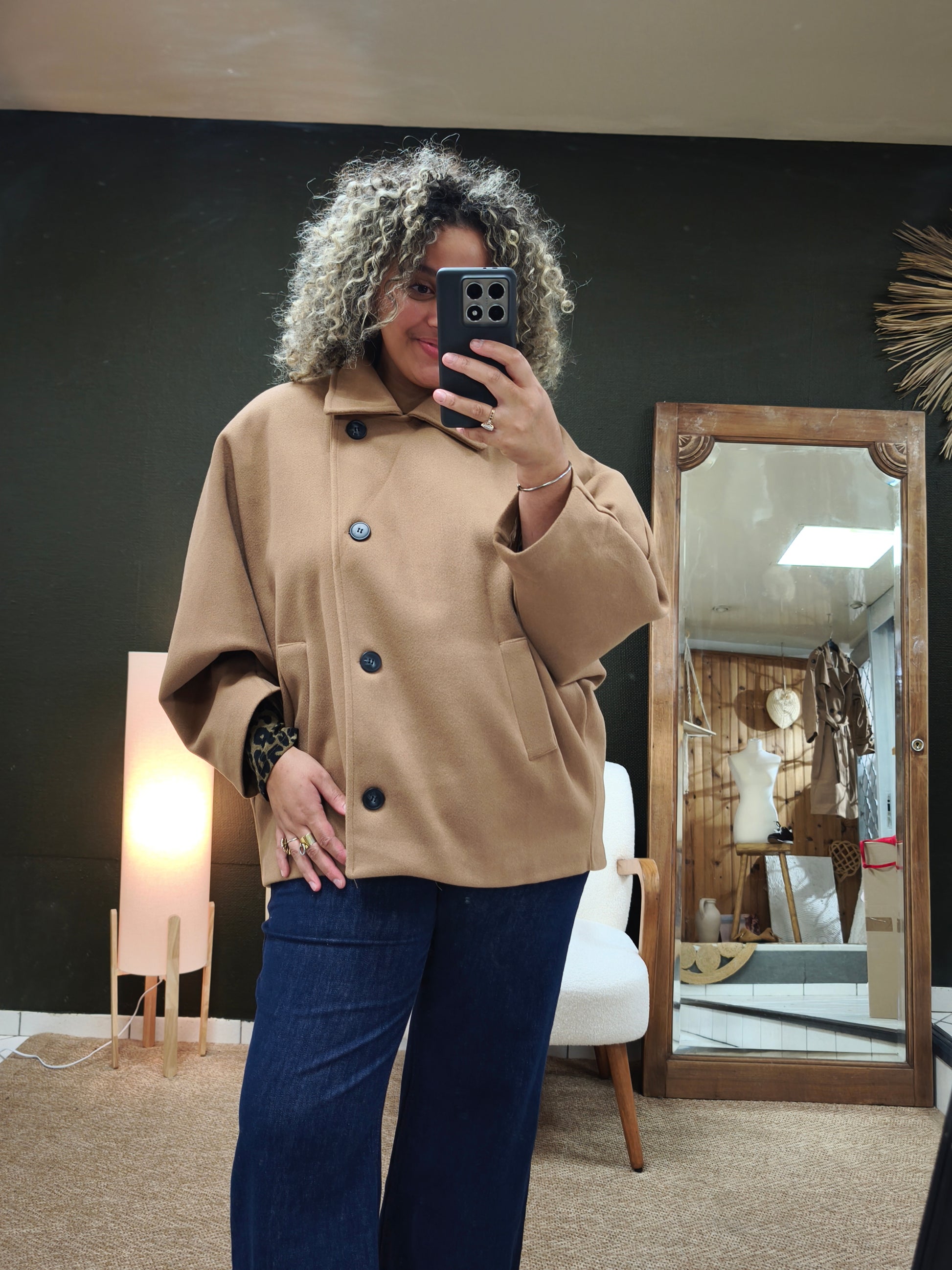 Manteau court Oversize Jodie Camel