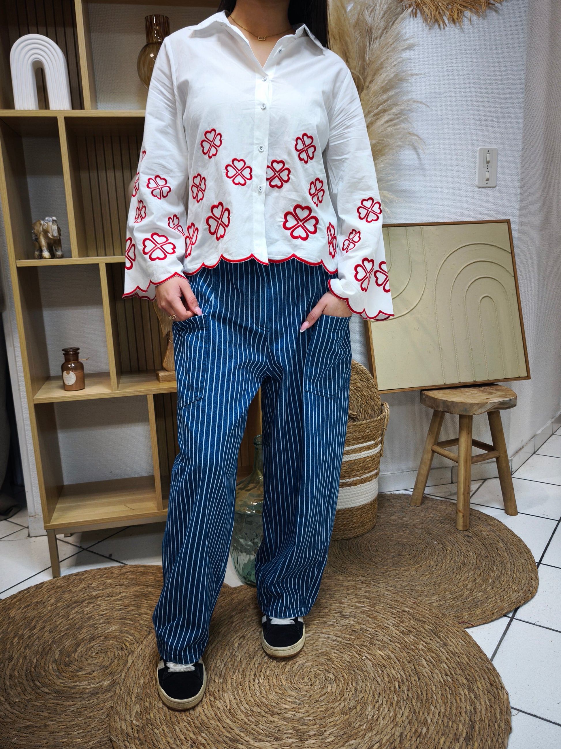 Pantalon à rayures, super bien coupé, on l'adore :)