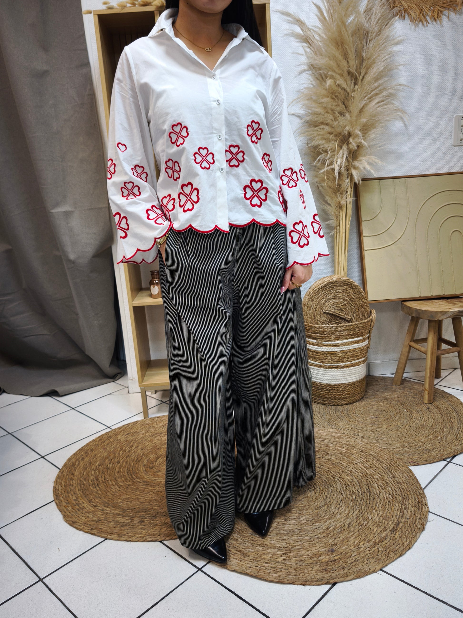 Pantalon Magic rayé version large, il est sublime ! Dans des tons de beige et marine, il offre une très jolie coupe